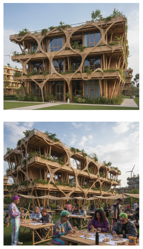 Hier werden Verfahren entwickelt, um Bambusfasern und -segmente mittels computergestützter Fertigung in komplexe, organische Strukturen zu verwandeln. KI-gestützte Designprozesse werden die Statik und Materialeffizienz des Bambusbaus optimieren und völlig neue ästhetische Formen ermöglichen.